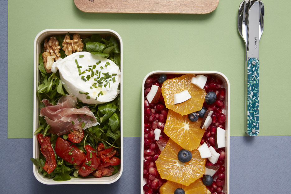 Les bentos sont composés d'un double compartiment en polypropylène haute qualité avec une capacité d'1.4 litres. Vous pouvez le réchauffer au micro-ondes (100° pendant 2 min) et le passer au lave-vaisselle (à 50°)