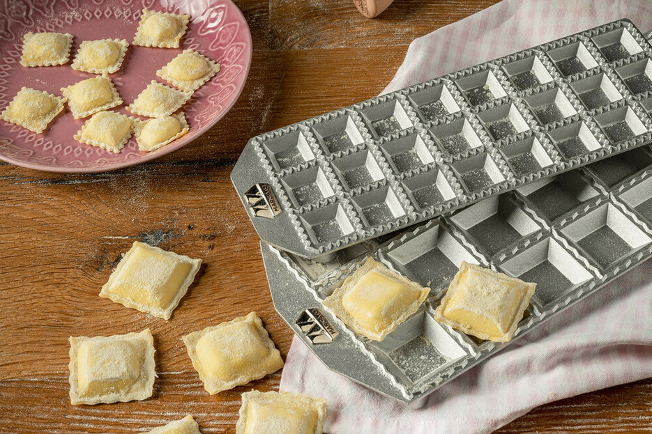 MARCATO propose ainsi une gamme complète d'ustensiles pour la préparation des pâtes fraîches, avec une variété de machines manuelles et électriques, des tablettes à raviolis, des emporte-pièces ..