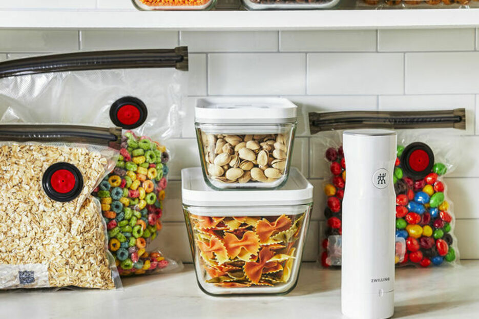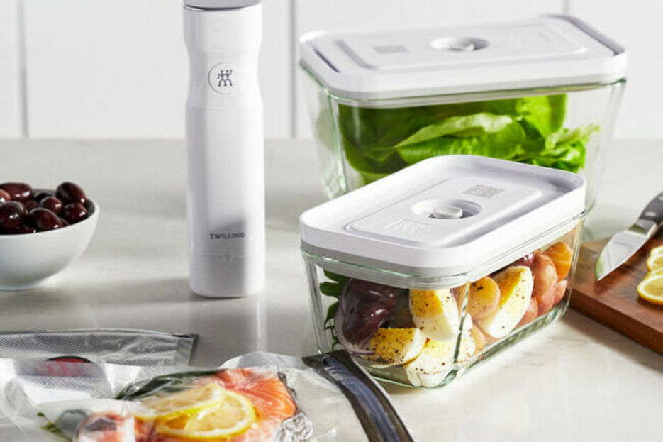 Le plus innovant, la gamme fresh & save, fini le gaspillage alimentaire, découvrez la mise sous vide qui vous permettra de garder la fraicheur de vos aliments et de vos plats jusqu'à cinq fois plus longtemps que les méthodes de conservation traditionnelles.