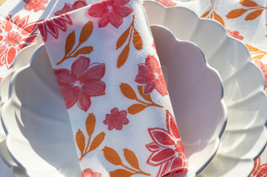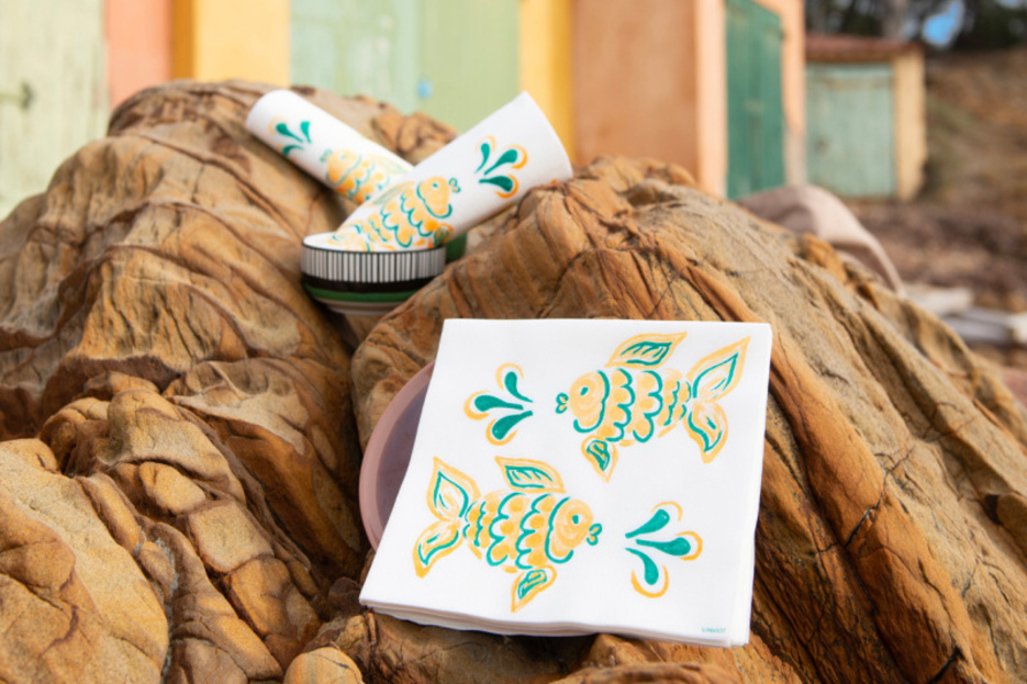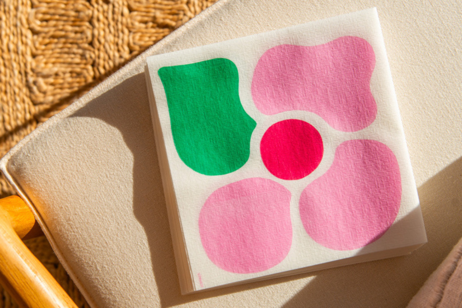Les serviettes sont en intissé made in France, en format standard (40 cm x 40cm) mais aussi en taille cocktail ou encore en rouleau.