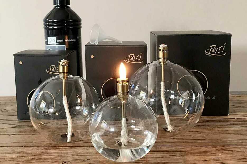 PERI DESIGN LIVING, marque Hollandaise spécialiste de la lampe à huile en verre soufflé.