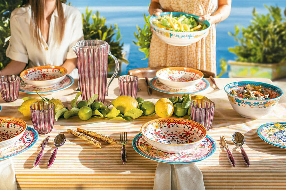 "Flower&Lemon" vient rappeler les senteurs et couleurs des fleurs du printemps et des citrons. Que vous souhaitiez faire une fête en plein air, le brunch du dimanche ou simplement un repas convivial, cette collection apportera fraicheur et gaieté.