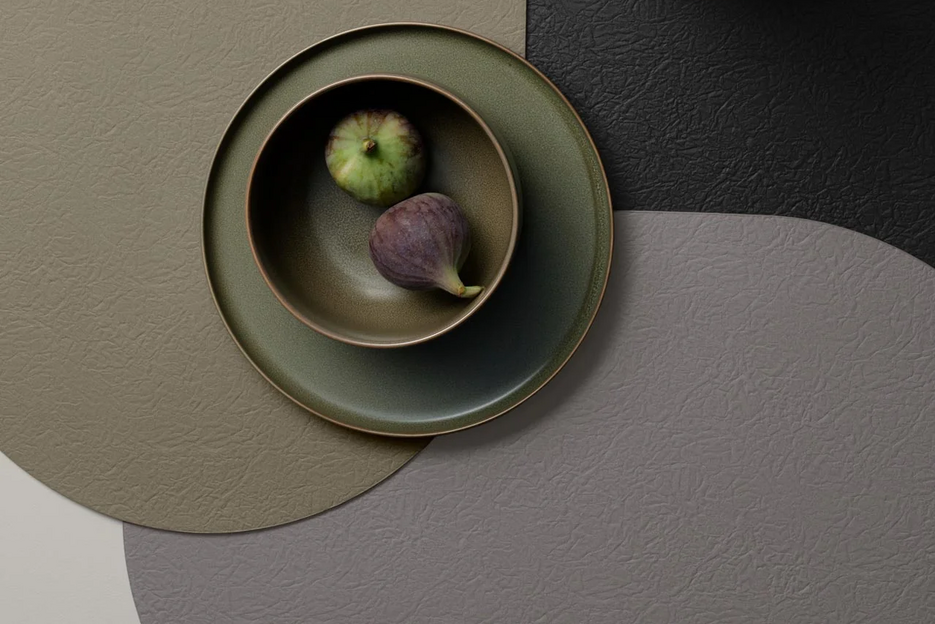 Firewood, Onyx, Noir ou Basalte, opter pour de la nouveauté, afin que couverts, assiettes et verres restent sur le même set, choisissez ces sets de table ovale au prix de 8.50€