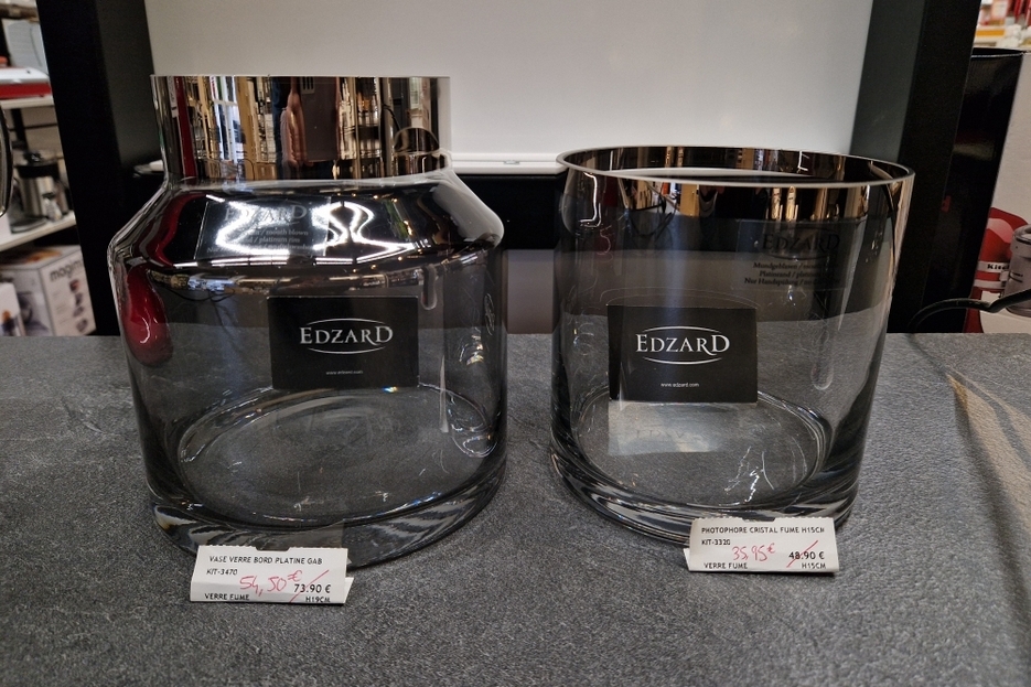 Avec l'arrivée du printemps venez retrouver dans notre magasin des réductions sur nos vases, photophores et lampes en verre fumé EDZARD.