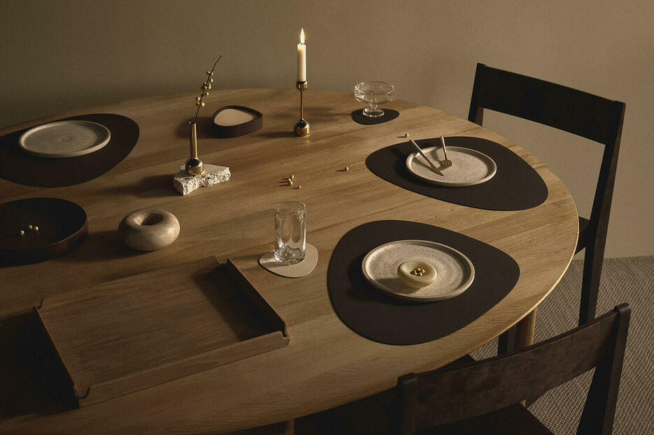 Venez découvrir les nouveautés de cette marque danoise afin d'avoir le style scandinave dans votre intérieur : sets de table, centre de table, sous-verre, marque-verre, ronds de serviette... en cuir recyclé certifié Oeko-tex (80% cuit, 20% caoutchouc).