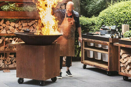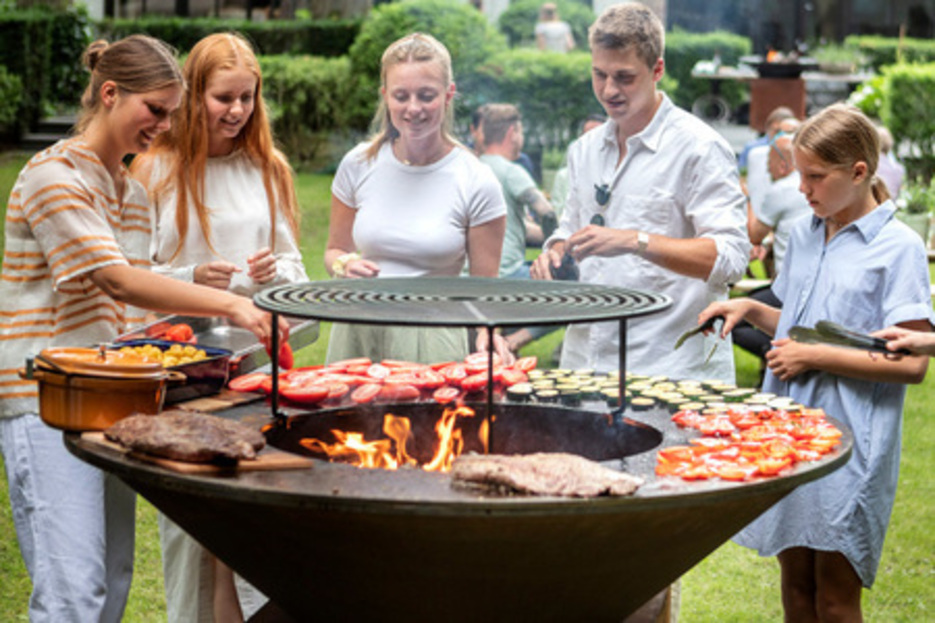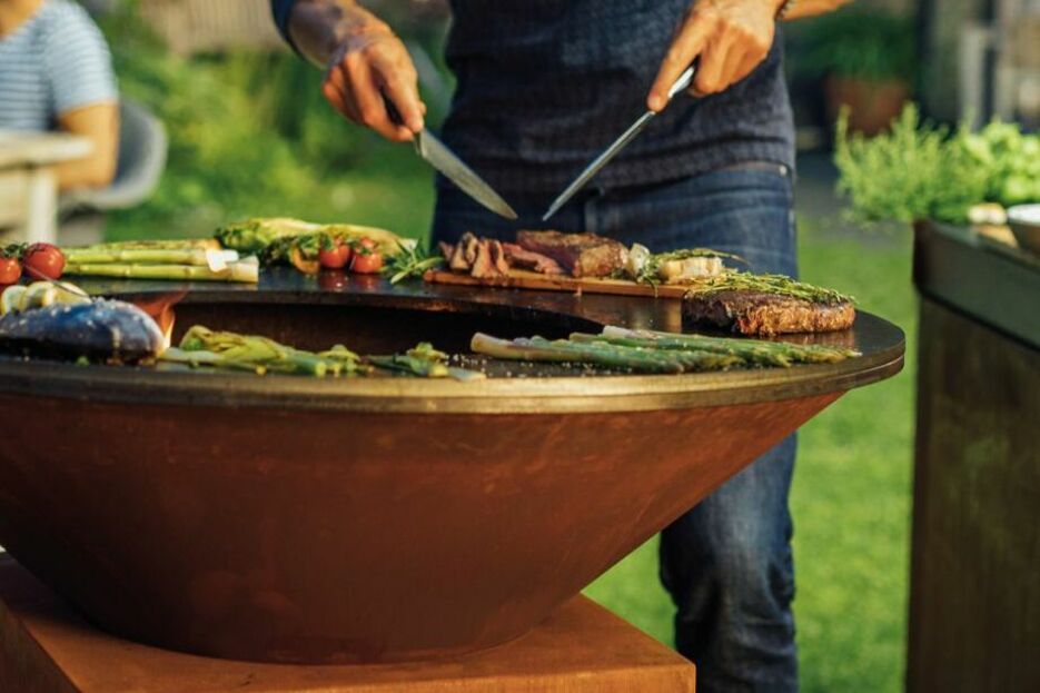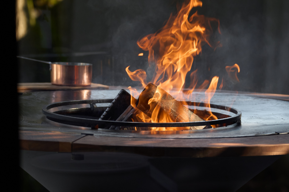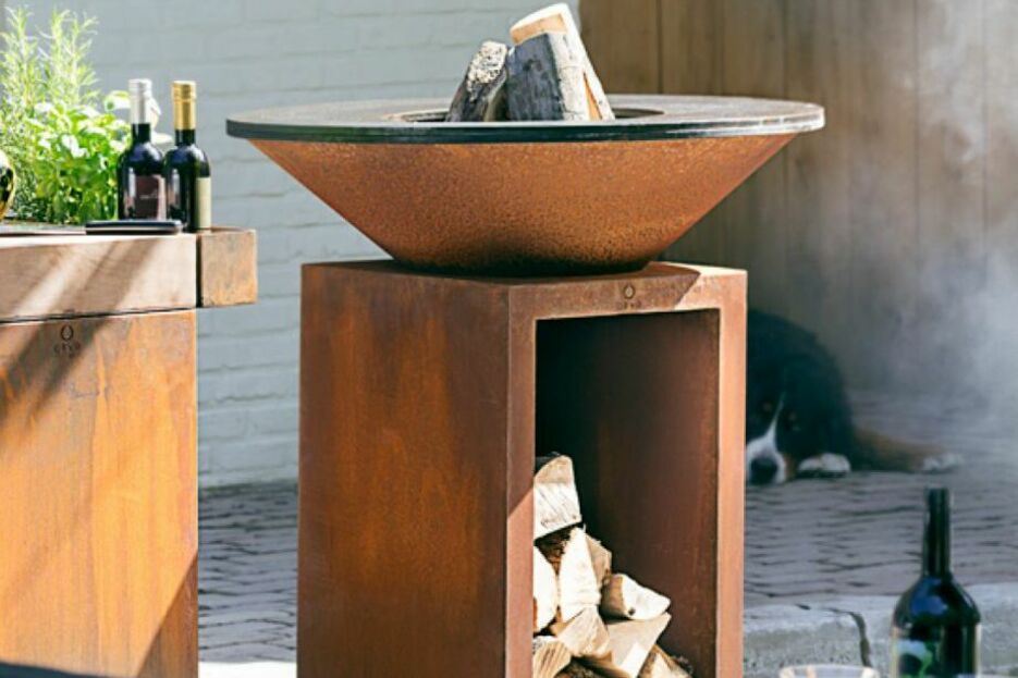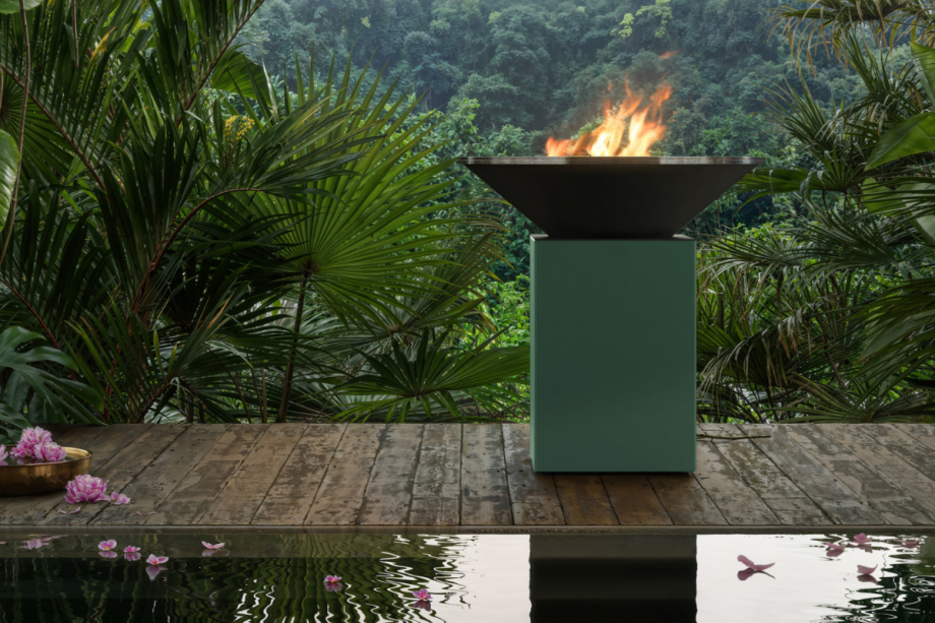 Une sculpture, à la fois brasero et plancha, destinée à apporter chaleur et convivialité au sein de votre espace extérieur.